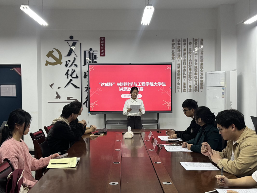 为搭建思政学习交流平台,引导青年学子深化思想认知、凝聚青春共识,11月2日晚,材料科学与工程学院“达成杯”大学生讲思政课比赛在产教融合中心424会议室成功举办。学院党委副书记殷婷婷、辅导员雷雨及新生班助程好、史怀想受邀担任评委,与现场学子共同见证思想的碰撞与成长。