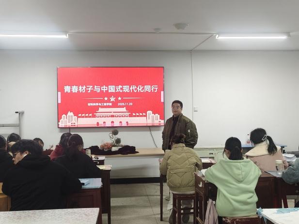 为深入学习贯彻党的二十届四中全会精神,引导青年学子将个人成长与中国式现代化建设紧密结合,11月20日,我院以“青春材子与中国式现代化同行”为主题组织开展班会活动。各班级班主任到场参与,通过理论学习、互动讨论、思想碰撞等形式,让党的二十届四中全会精神入脑入心,推动材料学子明晰使命、勇担重任。