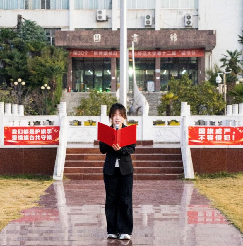 人工智能与计算机学院2505班段兆卿同学作为学生代表发表国旗下的演讲。她回顾先烈征程,结合新时代发展机遇,号召同学们传承“为中华之崛起而读书”的精神,在专业领域刻苦钻研,将个人理想融入教育强国、科技兴国的时代浪潮,让青春在奋斗中绽放光彩。