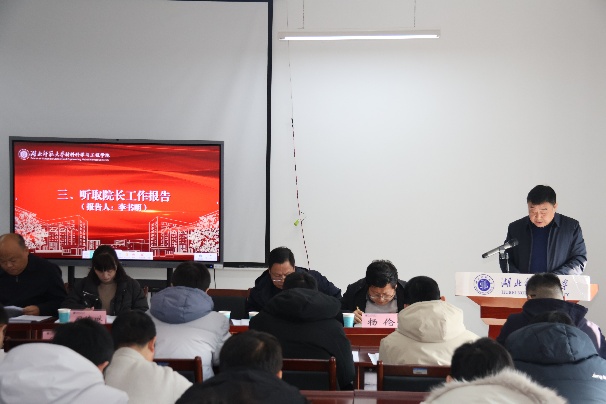 会上,院长李书明作题为《聚焦内涵 聚力突破 奋力开创材料科学与工程学院高质量发展新局面》的工作报告。他回顾了2025年学院各方面的工作成绩,客观分析了当前发展形势,并擘画了学院“十五五”发展蓝图。学院党委副书记殷婷婷代表工会作题为《守初心践使命 聚合力促发展》的工会工作报告,总结了2025年学院工会在思想引领、民主管理、服务职工、凝聚力量等方面的工作成效,进一步明确了今后的工作思路与目标任务。