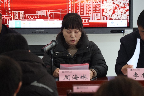 随后,正式会议在《国歌》声中开幕。首先,校工会副主席周海琳应邀出席并讲话,她对学院第一届教职工大会暨第一次工会会员大会的顺利召开表示祝贺,肯定了学院工会前期在服务教职工、助力学院发展中所做的工作,并希望学院以此次大会为契机,进一步发挥工会桥梁纽带作用,凝聚教职工智慧与力量,为推动学院高质量发展注入新动能。