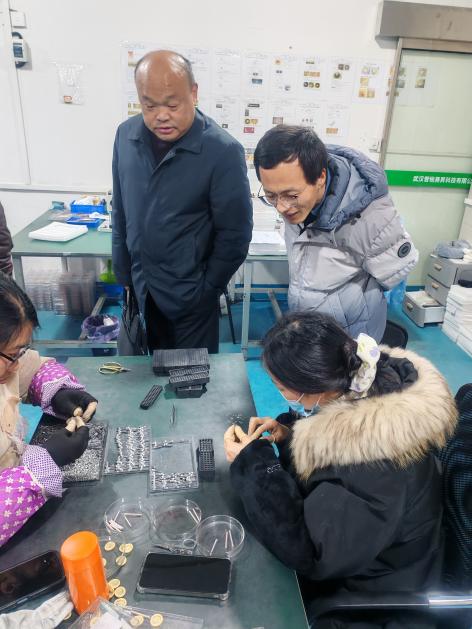 在调研期间,武汉鑫华勤精密制造有限公司董事长屈波兰详细介绍了公司在高端精密零部件制造、新材料应用研发、智能制造升级等方面的最新进展,以及在航空航天、新能源汽车、医疗设备等领域的市场布局和发展规划。武汉天之逸科技有限公司董彪董事长介绍了公司概况,以高性能功能材料、环保涂层材料及新能源材料的研发与产业化为主业,产品广泛应用于电子器件、节能环保、新能源电池等领域,是湖北省高新技术企业和“专精特新”成长型企业的代表。
